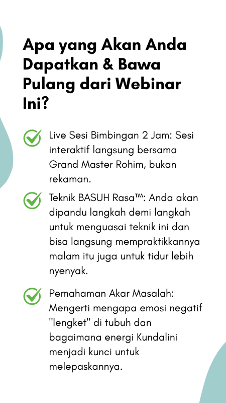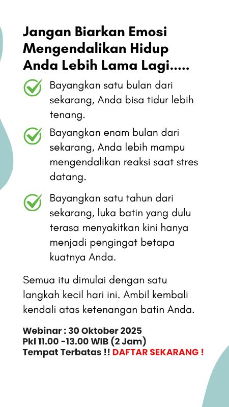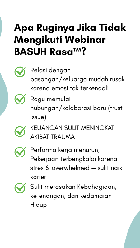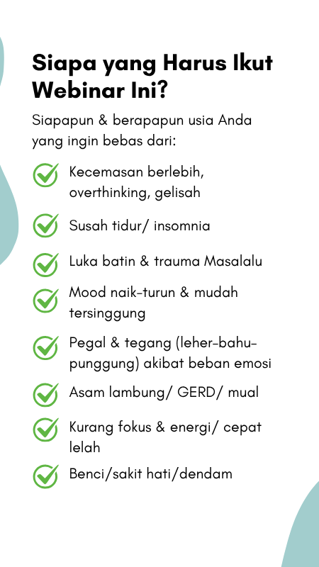 2 Jam Webinar untuk Membersihkan emosi negatif, menyembuhkan luka batin, mengatasi susah tidur, kecemasan, serta trauma dengan cara yang aman & mudah